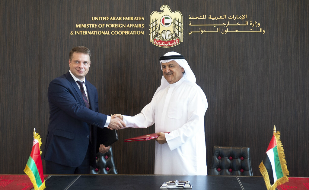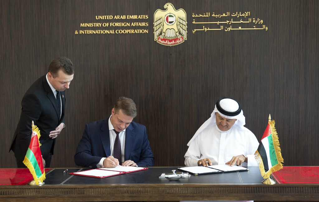 От белорусской стороны документ подписан Чрезвычайным и Полномочным Послом нашей страны в ОАЭ Андреем Лученком, с эмиратской — заместителем Министра иностранных дел Ахмедом аль-Джарманом.